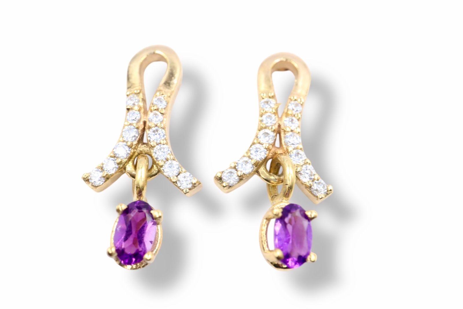 Aretes "Arco de la Realeza" en Oro Amarillo de 14K con Amatistas y Diamantes