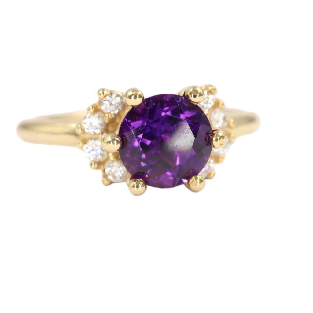 Anillo "Aura Real" en Oro Amarillo de 14K con Amatista y Diamantes - Amatista 6mm, 8 Diamantes 1 mm, Oro Amarillo 14K