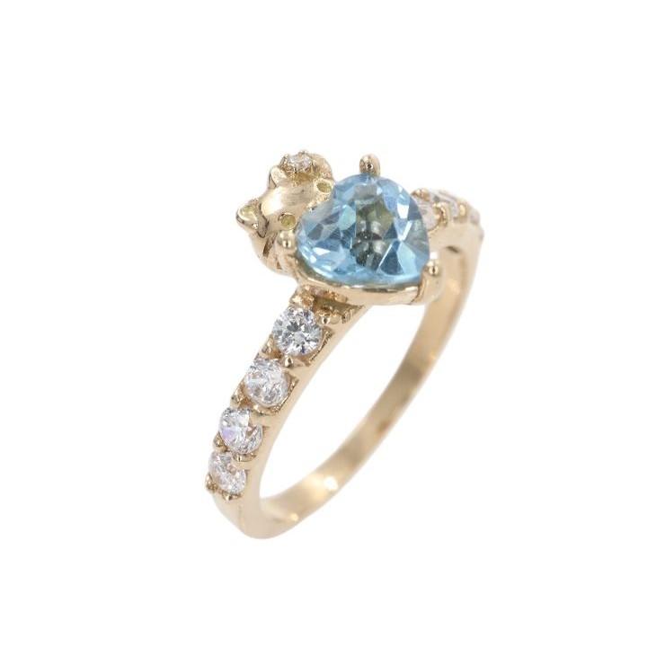 AnillosAnillo "Corazón de Kitty" en Oro Amarillo de 14K con Topacio Azul y Diamantes