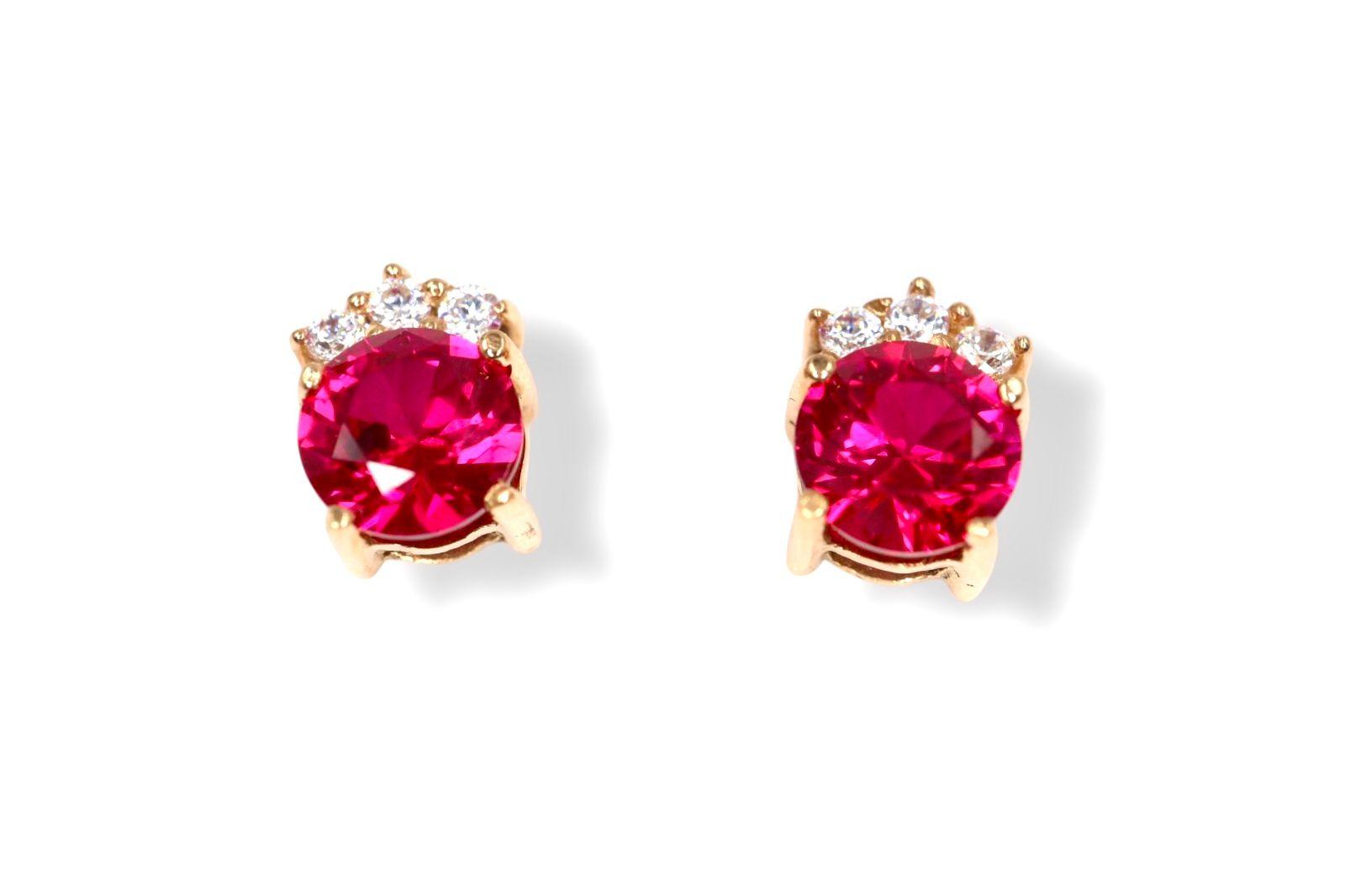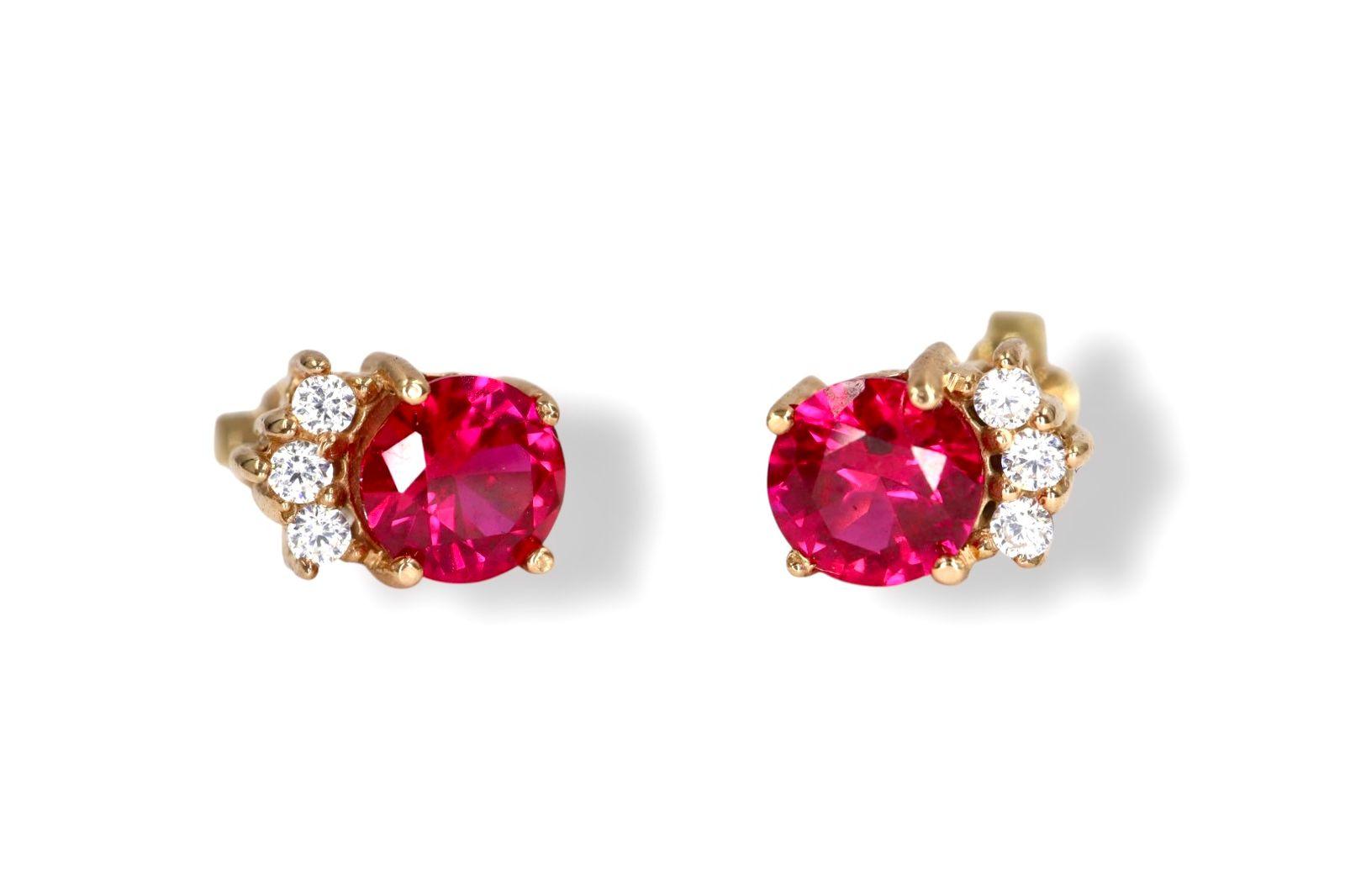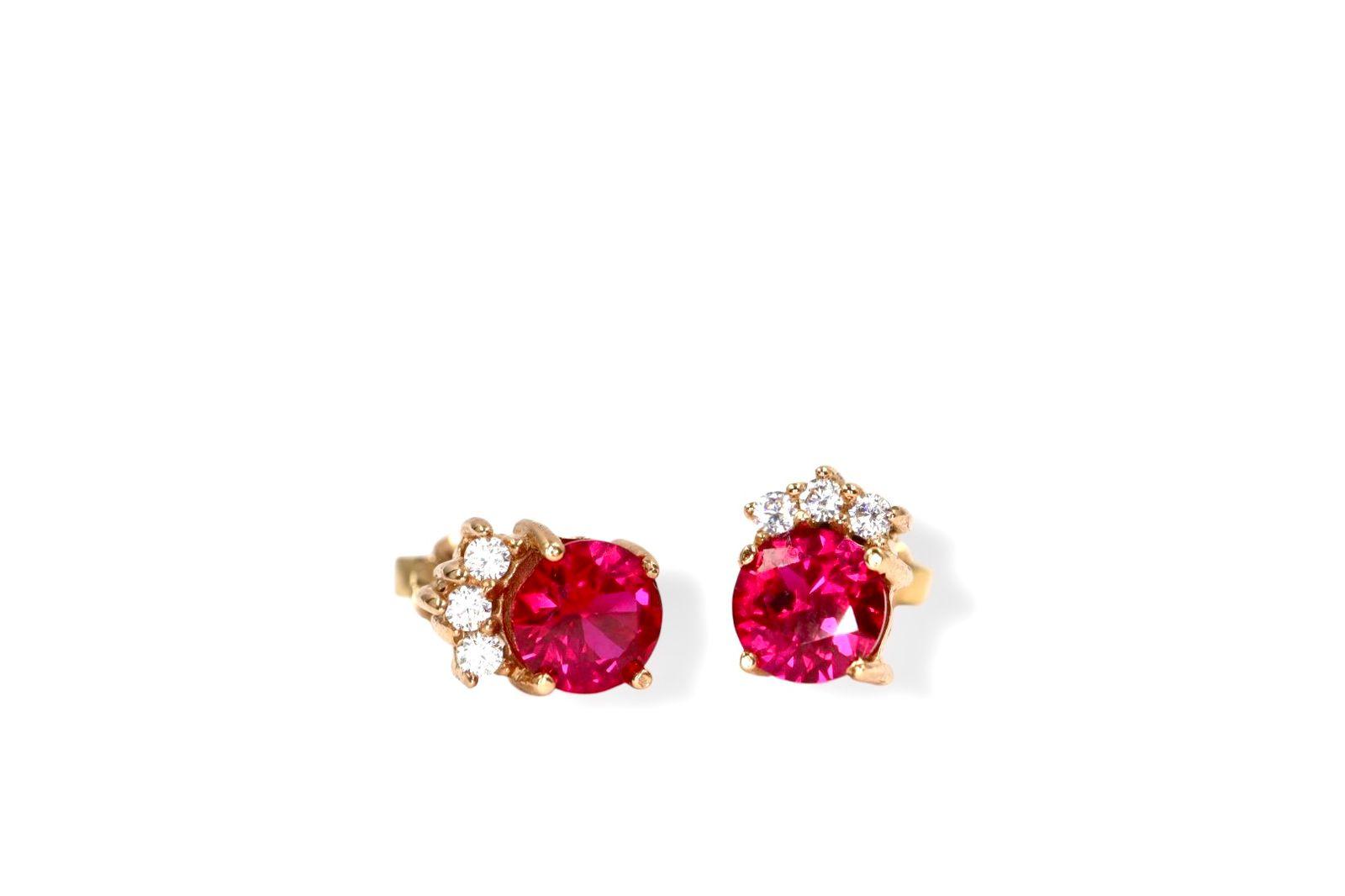 En el corazón de cada arete, un rubí de 5 mm, con su intenso color rojo, irradia un calor y una vitalidad que evocan la fuerza de un amor verdadero. La gema principal está marcada por un delicado halo de tres diamantes de 1 mm a cada lado, que actúan como destellos de luz pura, realzando la profundidad y el brillo del rubí. Esta combinación crea un contraste sublime, digno de una pieza de la realeza, que atraerá todas las miradas.