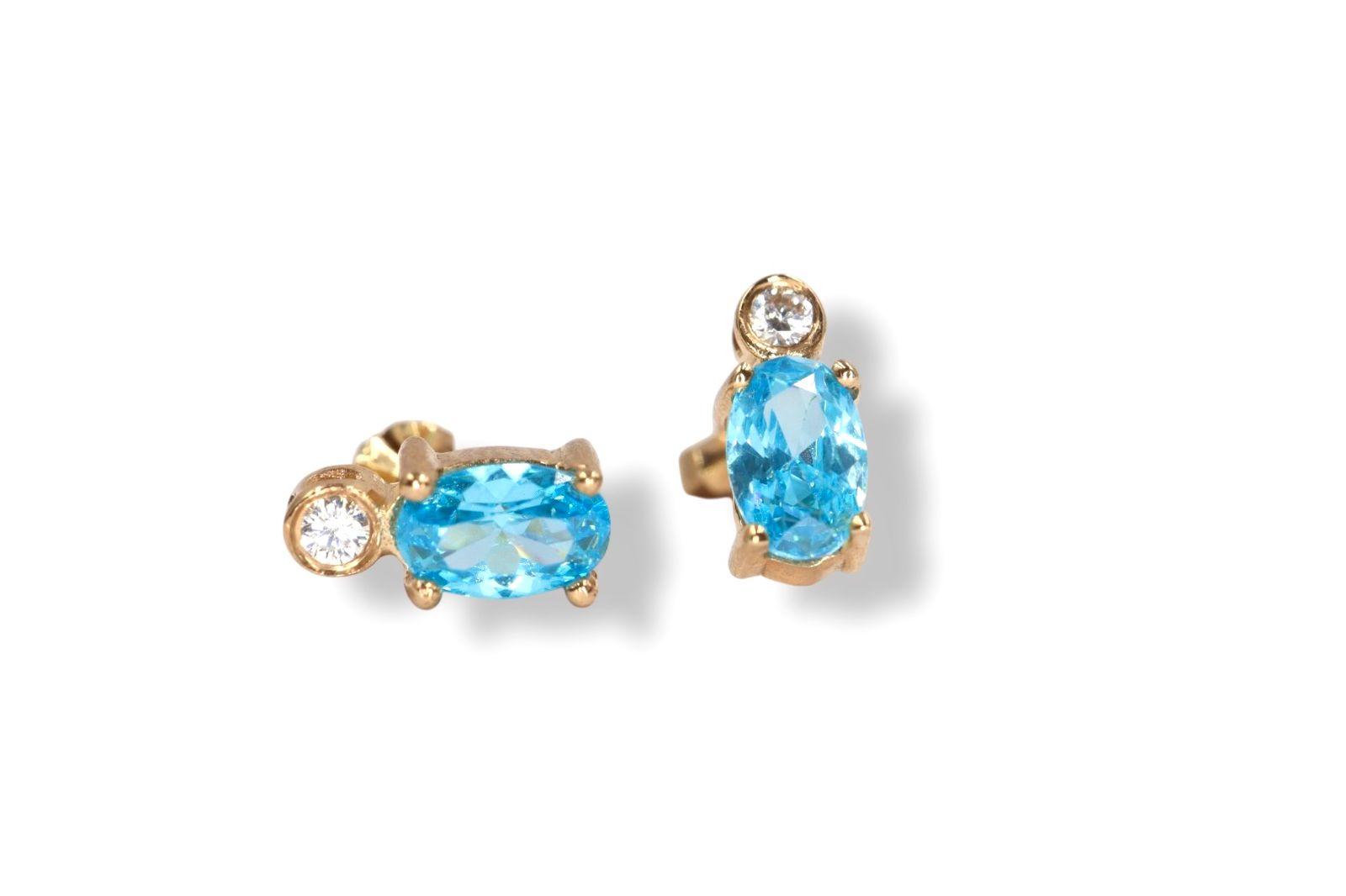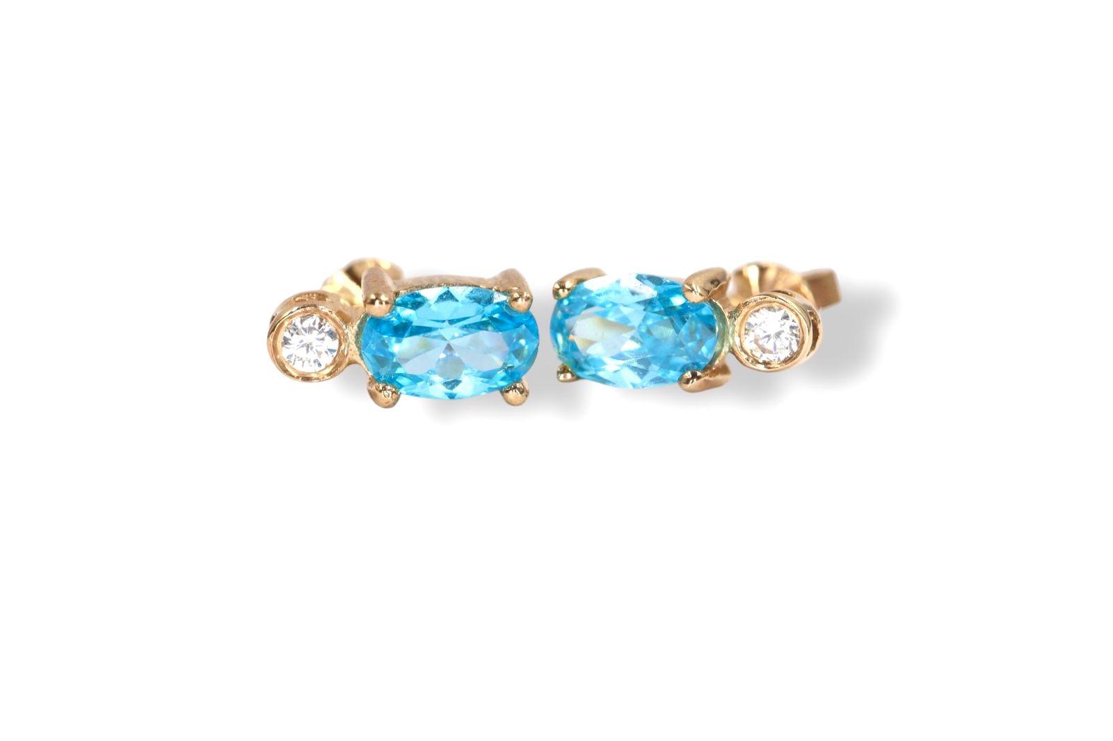 En el centro de cada arete, una exquisita aguamarina ovalada de 4x5 mm, con su color azul cielo puro, evoca la calma and the freshness of the ocean. Su forma delicada y su tonalidad translúcida capturan la luz y la transforman en un brillo suave y etéreo. Sobre la gema principal, un diamante de 2 mm, deslumbrante como la luz del sol sobre el agua, añade un punto de resplandor que realza la belleza de la aguamarina y completa la armonía del diseño.