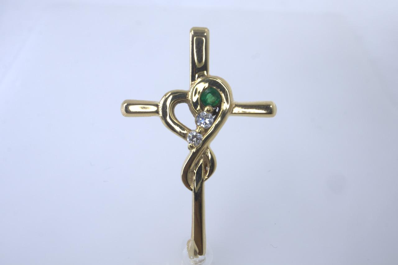 Dije de Cruz "Esperanza Eterna" en Oro Amarillo de 14K con Esmeralda y Diamantes