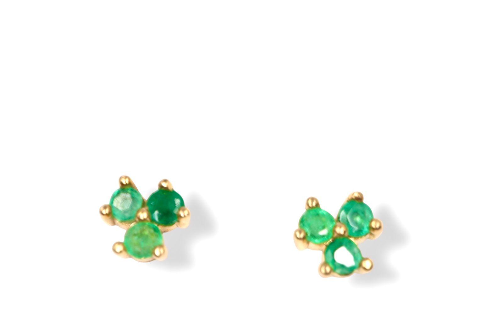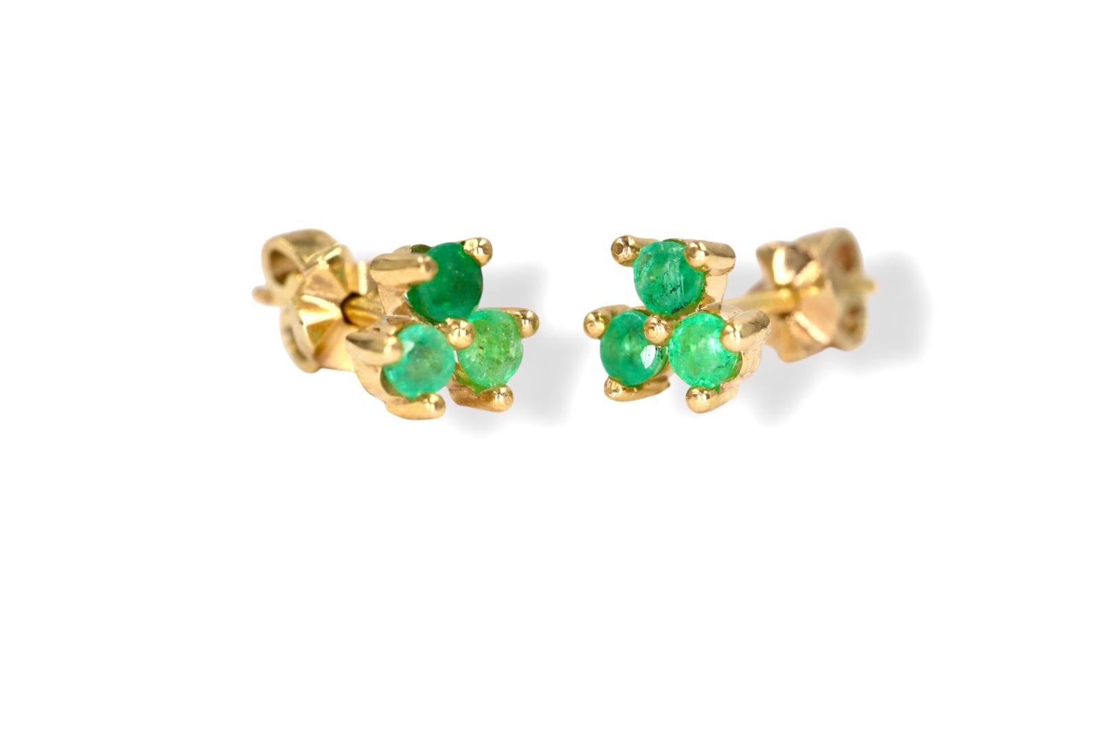Aretes "Trilogía de la Naturaleza" en Oro Amarillo de 14K con Esmeraldas - 14K Oro Amarillo, 3 Esmeraldas 3mm